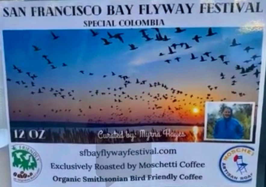 For our Flyway Festival, Moschetti Coffee is proud to offer an exclusively roasted organic coffee grown in Columbia as part of the Smithsonian Migratory Bird Center’s Bird Friendly® Coffee Program, which “Protects Migratory Birds and Supports Shade-Grown Coffee Farms.” A portion of your purchase will be donated to the San Francisco Bay Flyway Festival. Our Flyway Festival Pop-Up features presenters and exhibitors/vendors. Your donations help keep our Festival wild and free. You may make an online donation on our Crowd-Funding site, again this year.